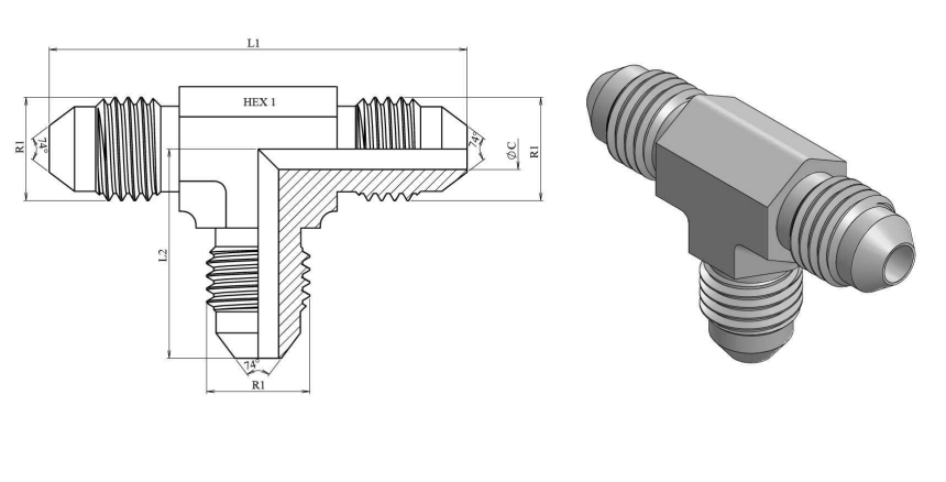 Тройник JIC 1.5/8"-12 (Ш-Ш-Ш)